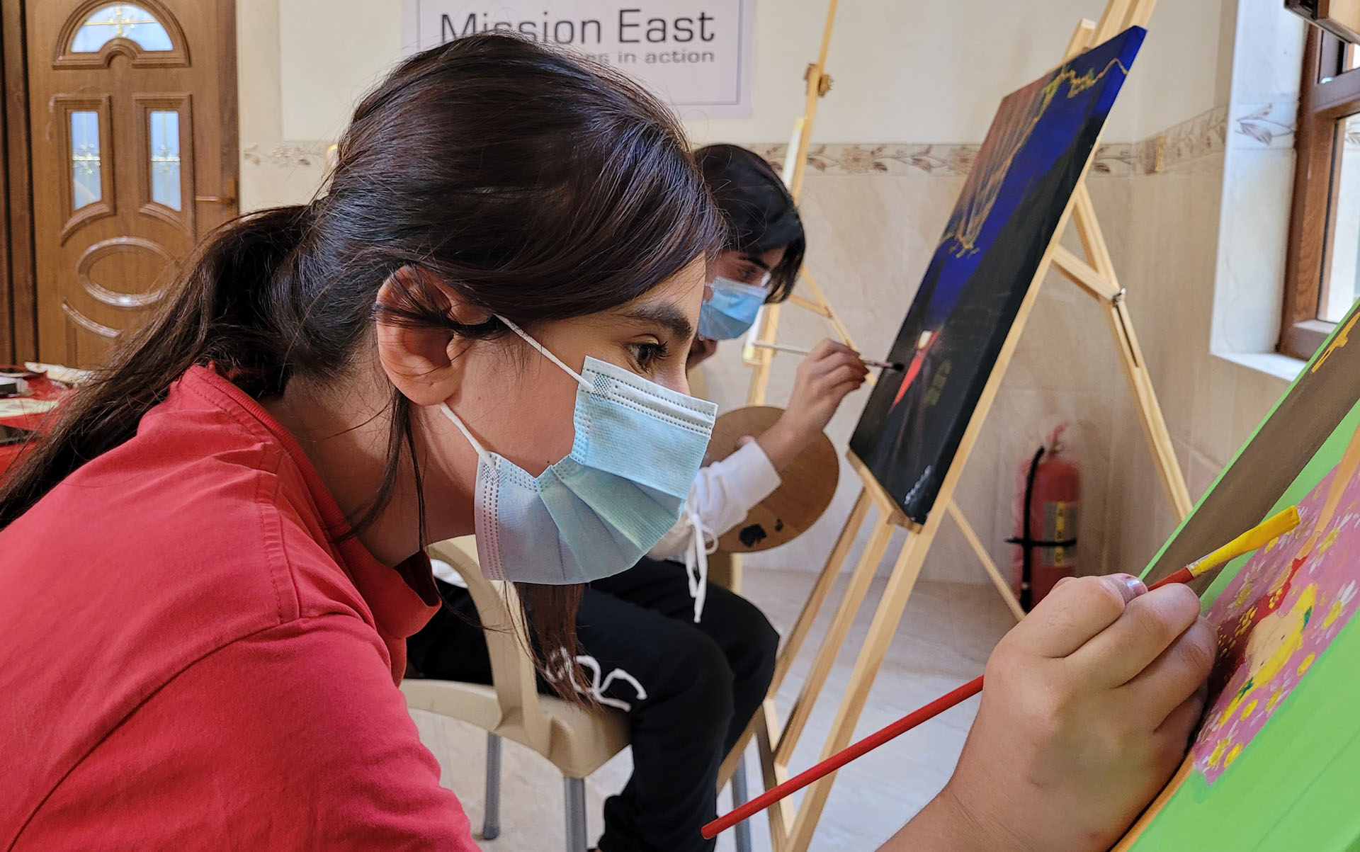 Just like many of the Yazidi women experience at Mission East’s community center in Sinjar, where they receive art therapy, participate in counseling groups and are trained to start and run companies so that they can support themselves and their children.