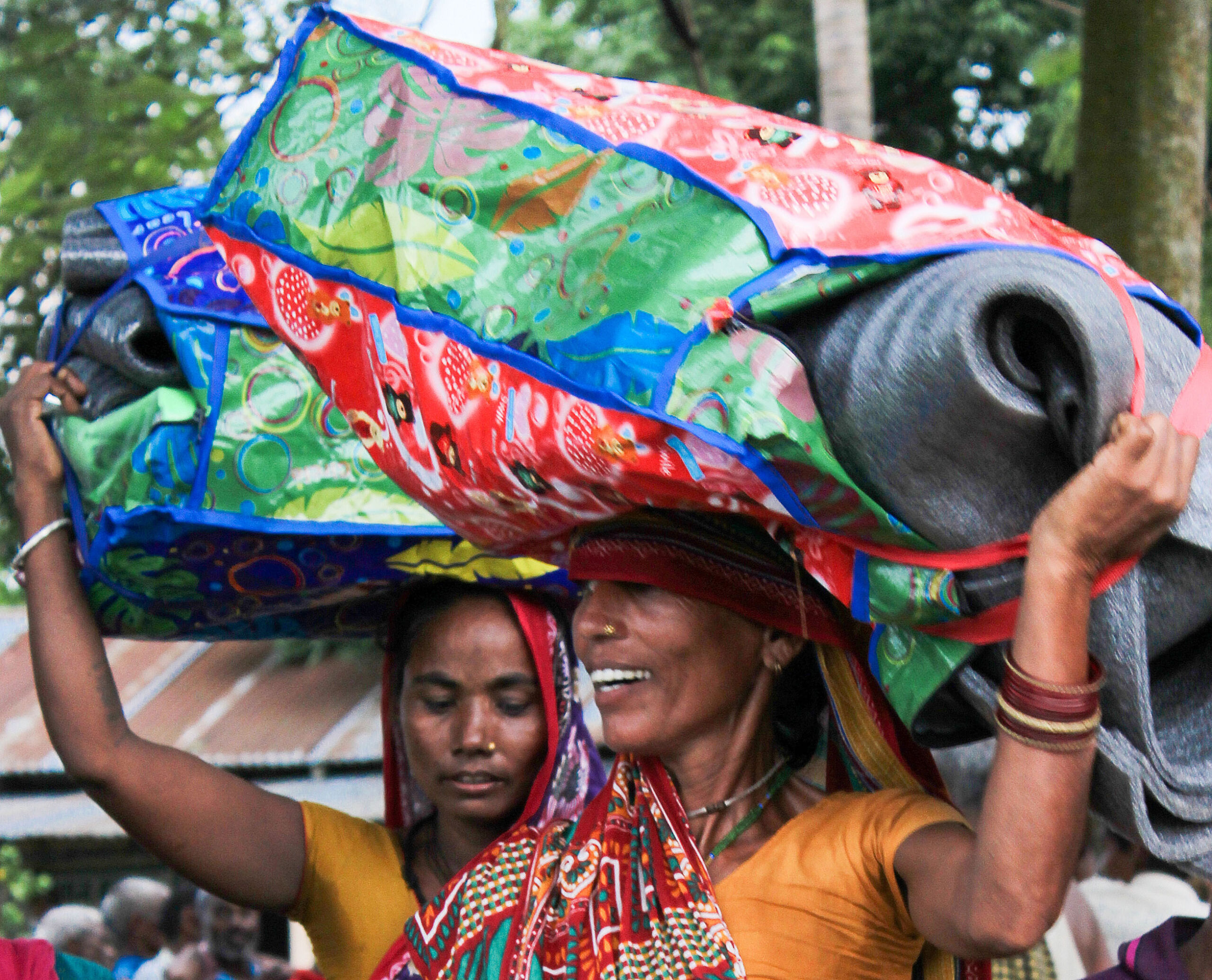 Billede i top: Kvinder modtager tæpper og opbevaringstasker efter oversvømmelse i Nepal.